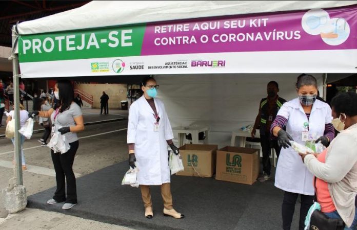 Equipes da Secretaria de Assistência e Desenvolvimento Social (Sads) e da Vigilância Sanitária (Secretaria de Saúde), em parceria com a Acib (Associação Comercial e Industrial de Barueri), Instituto Raízes e Organização Fênix, realizaram uma ação na terça-feira (dia 9). Uma tenda foi montada no terminal rodoferroviário do Centro de Barueri e a população que por lá passou levou para casa um kit com sabonete, máscara e um folheto explicativo com dicas para o uso correto da máscara facial.