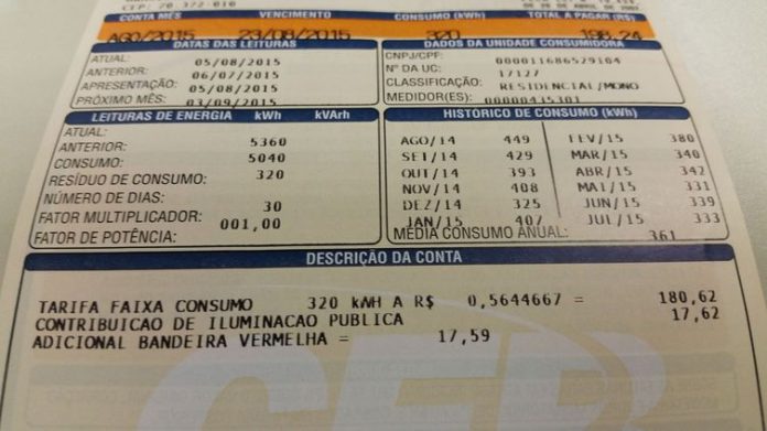 A Agência Nacional de Energia Elétrica (Aneel) informou hoje (30) que a bandeira tarifária para setembro de 2019 continuará na cor vermelha no Patamar 1, a mesma de agosto. Isso significa que haverá uma cobrança extra de R$ 4 para cada 100 quilowatts-hora consumidos. Em julho vigorou a cobrança da bandeira tarifária amarela, na qual há um acréscimo de R$ 1,50 a cada 100 kWh consumidos.