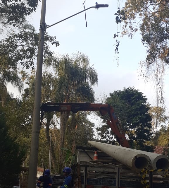 As equipes da Prefeitura estão implantando os postes, passando a fiação e colocando os braços e luminárias com lâmpadas de LED.O serviço está sendo executado por meio do Programa Ilumina Cotia, lançado pelo prefeito Rogério Franco em 2018.