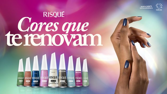 Sobre Risqué l www.risque.com.br l @risqueoficial – Marca líder no segmento de esmaltes no País, com mais de meio século de história no mercado de produtos de beleza. A marca é pioneira em lançar tendências e hoje é referência de categoria para milhões de consumidores em todo o Brasil. Além disso, a marca disponibiliza uma cartela fixa de cores e uma linha completa de produtos de tratamento para pés, mãos e unhas.