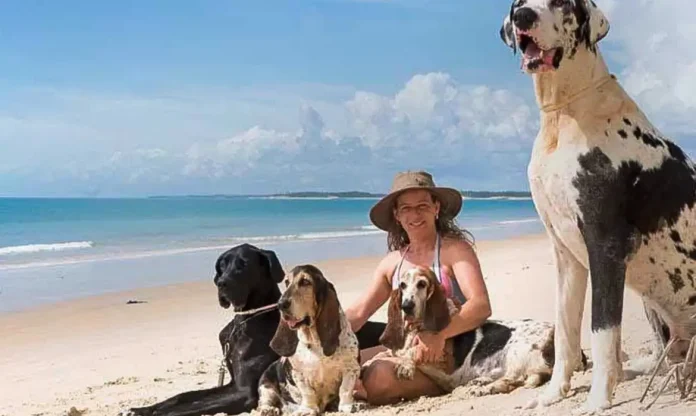 O tamanho dos dogs alemães de Tina Coêlho costumam render situações inusitadas até mesmo nas hospedagens pet friendly. “A gente sabe que nossos cachorros são muito tranquilos e não representam perigo. Nunca nos causaram problemas. Mas nem todo hotel sabe disso”.