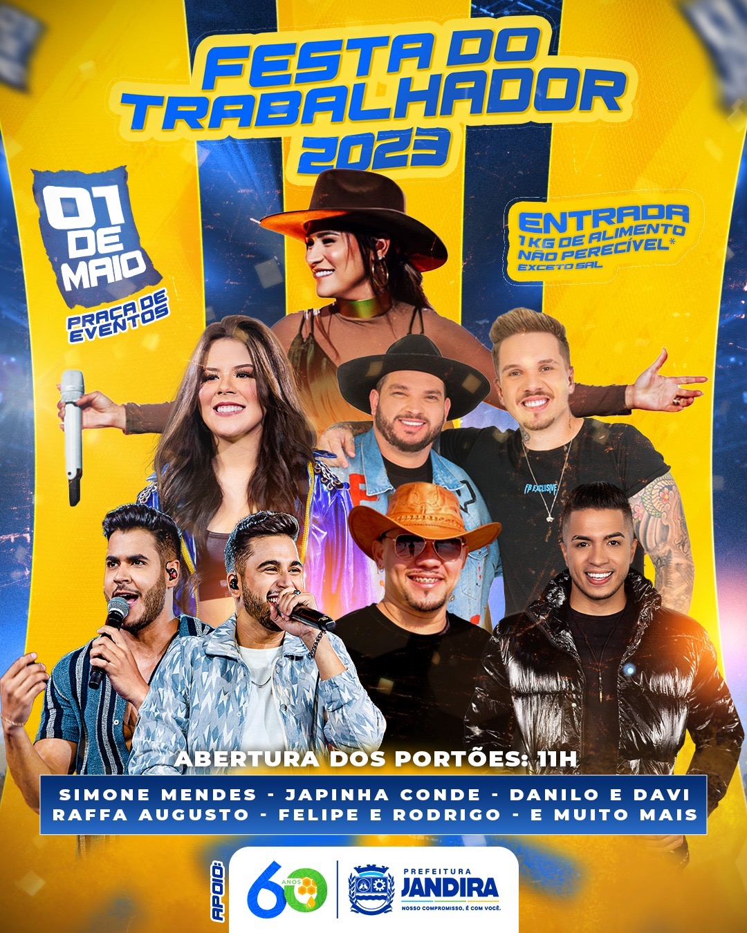 Com o objetivo de celebrar a importância do trabalho e proporcionar um dia de entretenimento aos munícipes jandirenses, a Prefeitura de Jandira, por meio da Secretaria de Comunicação e Eventos realizará, na próxima segunda-feira, 1º de maio, mais uma edição da Festa do Trabalhador.