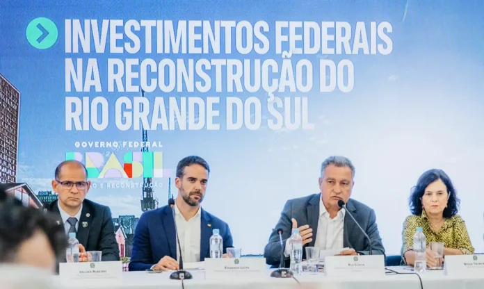 O valor do Orçamento da União empenhado, mais financiamentos e isenção de juros da dívida do estado com o governo federal, foi apresentado em um balanço de ações federais, nesta terça-feira (28), pelo ministro da Casa Civil da Presidência da República, Rui Costa, em Porto Alegre, durante a primeira reunião do Conselho de Monitoramento das Ações e Obras para Reconstrução do Rio Grande Sul.
