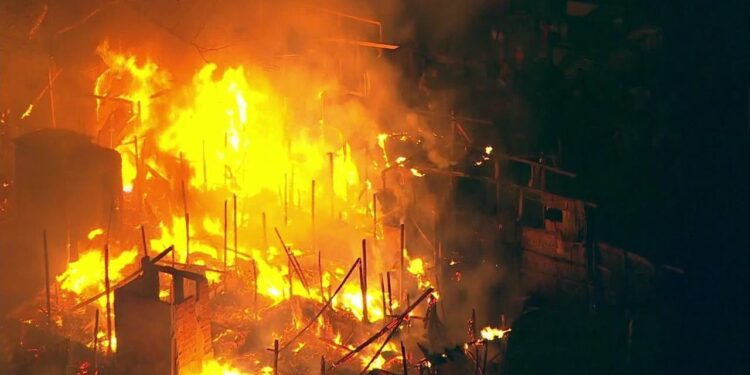 Um incêndio atinge a comunidade Conjunto Vitória, no município de Osasco, região metropolitana de São Paulo, no início da noite de terça-feira (28), informou o Corpo de Bombeiros.