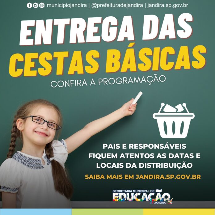 A Prefeitura de Jandira, por meio da Secretaria Municipal de Educação (SMEJ) iniciará na próxima terça-feira, dia 22 de Junho, a entrega dos gêneros alimentícios que compõem a merenda escolar. A entrega, se dá em razão da suspensão das aulas presenciais e em consonância às recomendações da Organização Mundial da Saúde e das autoridades do nosso Município, para evitarmos a propagação do COVID-19.
