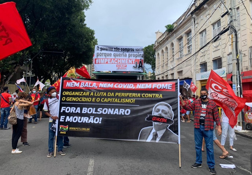 Na capital baiana, também pela manhã, os participantes se reuniram na Praça do Campo Grande e, em seguida, saíram no sentido da Praça Principal. Eles gritavam palavras de ordem e exibiam faixas e cartazes.