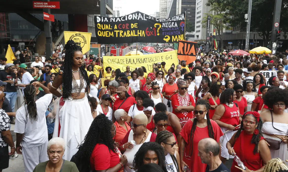 A 21ª Marcha da Consciência Negra, realizada nesta quarta-feira (20) na avenida Paulista, contou com centenas de pessoas na primeira edição na qual comemora-se a data como feriado nacional. “A gente celebra com muita alegria o primeiro feriado nacional, para a gente é uma virada de página”, disse José Adão de Oliveira, de 69 anos, co-fundador do Movimento Negro Unificado (MNU), criado em 1978, e um dos coordenadores da marcha em São Paulo.