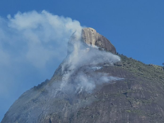 Os bombeiros tiveram a ajuda de brigadistas do Parque Nacional da Tijuca. A suspeita é que o fogo tenha sido provocado por queda de balão.