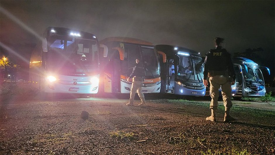 Na segunda-feira (9), outros 30 veículos de transporte coletivo foram interceptados na mesma situação. Em todos os casos, os passageiros são identificados e conduzidos para unidades da Polícia Federal.