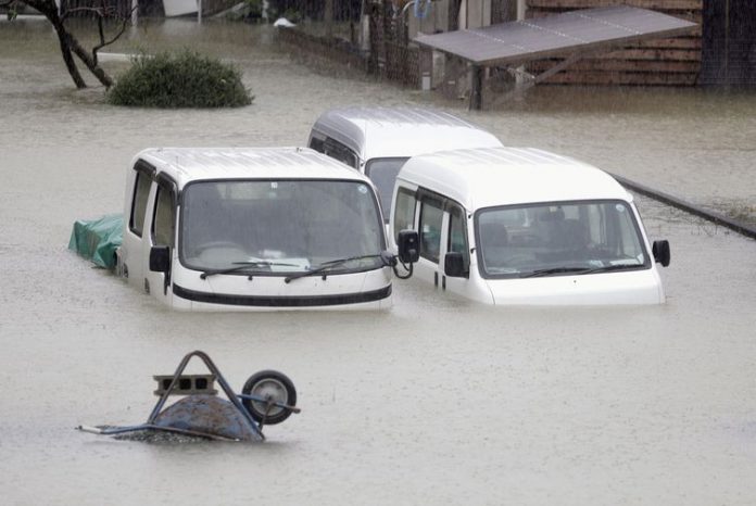 Na província de Nagano, noroeste de Tóquio, um dique se rompeu no Rio Chikuma, causando inundação em ampla área. Muitas pessoas ficaram presas em suas casas. Helicópteros de socorro retiraram essas pessoas pelo telhado.