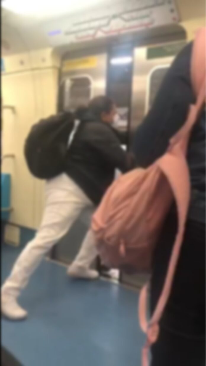 É possível ver nas imagens que a discussão acontece na Linha 1-Azul, com desfecho na estação Carandiru, na Zona Norte paulistana.