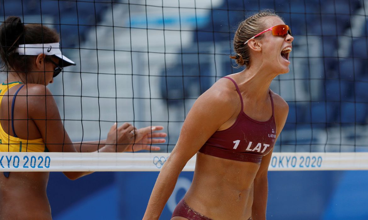 As brasileiras Ana Patricia e Rebecca foram derrotadas por Tina Graudina e Anastasija Kravcenoka, da Letônia, por 2 sets a 1 (parciais de 15/21, 21/12 e 12/15), no início da madrugada desta terça-feira (28) no Parque Shiokaze, no torneio de vôlei de praia da Olimpíada de Tóquio (Japão).